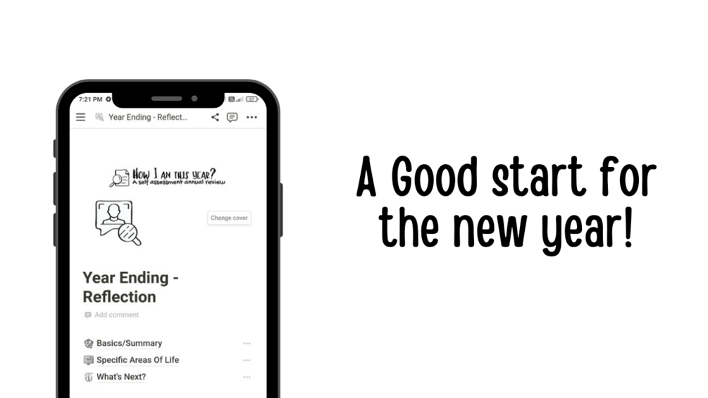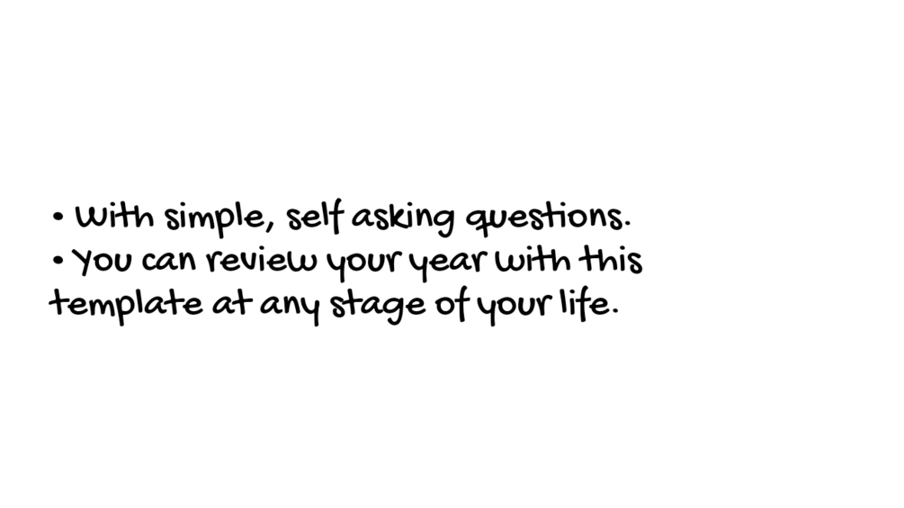 A Template for your self assessment and annual review of the whole year. As a notion template and printable version.